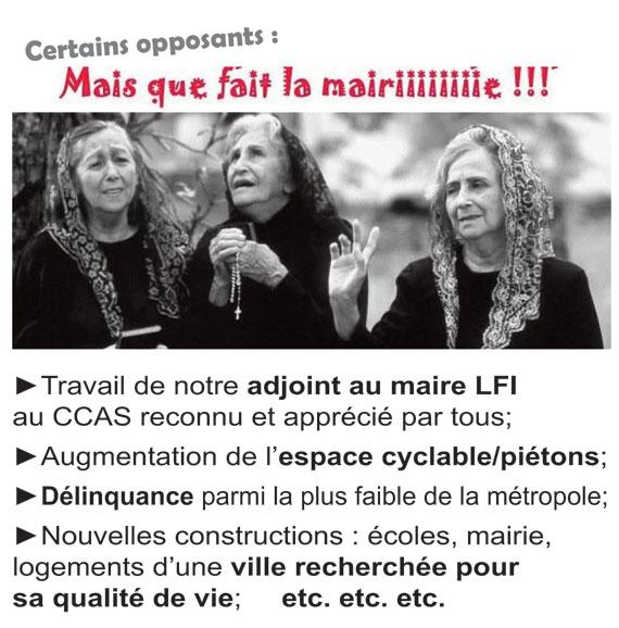 "Le Haillan (toujours) avec vous" (Andréa Kiss) d'Adrien Quatennens au nom de la France insoumise Ce dimanche 15 mars se tiendra le premier tour des élections municipales. Je vous appelle à y participer massivement et sans aucune hésitation. Bien sûr, il conviendra de respecter les consignes et les précautions utiles face à l’épidémie : se laver les mains avant et après le vote, amener son propre stylo de couleur noire pour émarger. Mais puisque ces élections se tiennent, il est hors de question pour nous d’y renoncer ou de confier le soin à d’autres de décider à notre place. Conformément au choix de notre assemblée représentative d’encourager les cadres correspondant à la fédération populaire que nous appelons de nos vœux, il n’y a pas de listes de La France Insoumise en tant que telles lors de ce scrutin. Mais La France Insoumise est fière de soutenir plus de 550 listes à travers le pays, ce qui fait de notre mouvement une force davantage présente dans ce scrutin que La République En Marche ou le Rassemblement National. Sur la plateforme, vous retrouverez l’ensemble des listes que nous soutenons. Ainsi, ce dimanche, la présence de La France Insoumise et de son logo sur les bulletins de vote fonctionne comme un bon point de repère. DANS VOTRE VILLE Le Haillan la France insoumise Ce sera un « label » qui confère à votre vote, l’efficacité que nous recherchons : |